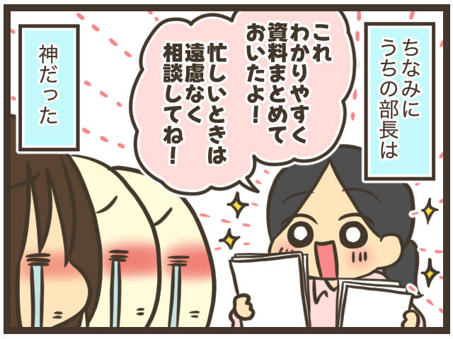 親身に話を聞いてくれたり、気を配ってくれたり、みんなが仕事を把握しやすいように資料を作ってくれたりだとか…!