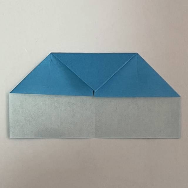 一番上の尖っているところを、下に向かって三角に折ります。
