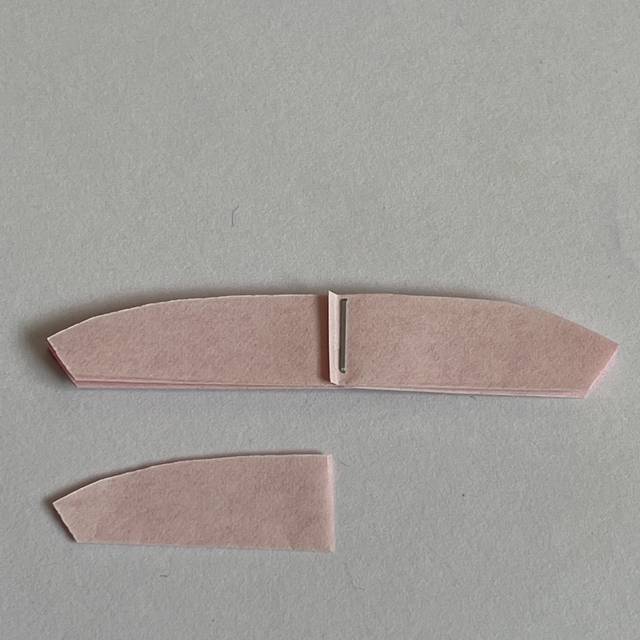 ピンク色が見える方を上にして、横の部分に半分の桜の花びらの形を描きます。