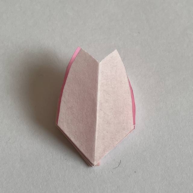 隣の花びらも開いて同じようにつぶして折っていきます。