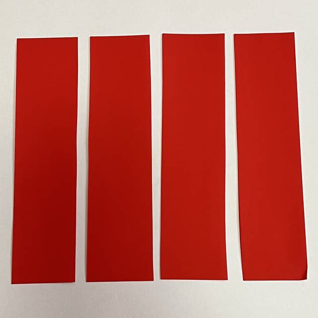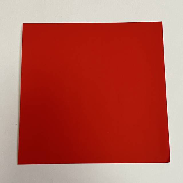 赤い折り紙を1枚用意します。