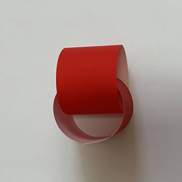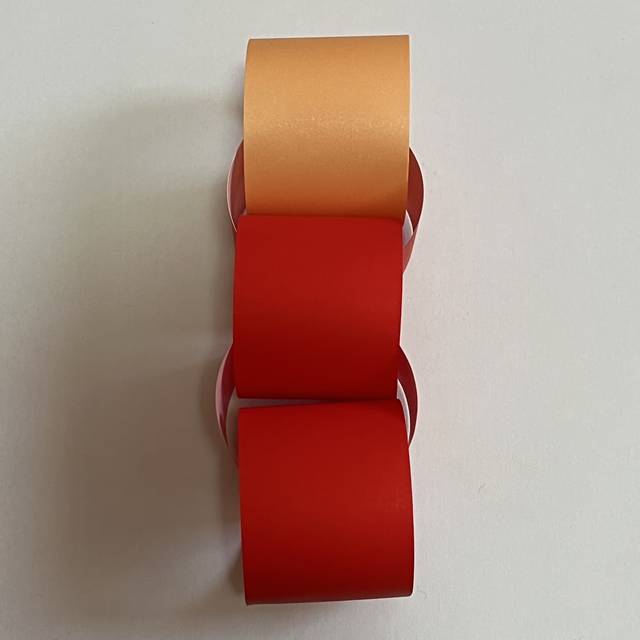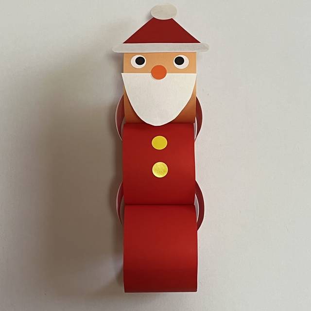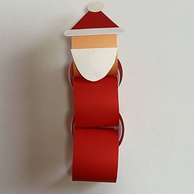 同じように赤い折り紙を輪つなぎしてつなげていったら、最後に肌色の折り紙を輪つなぎします。