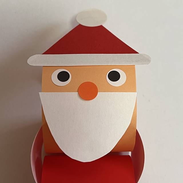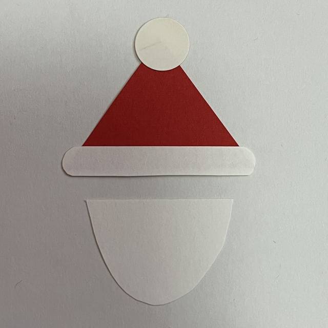 肌色の折り紙のところに、のりで帽子とひげをつけます。
