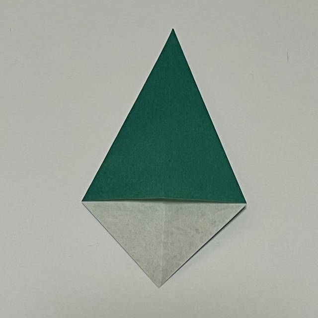 開くと真ん中に折り線ができているので、その線に沿って両側から先端がとがるように折ります。