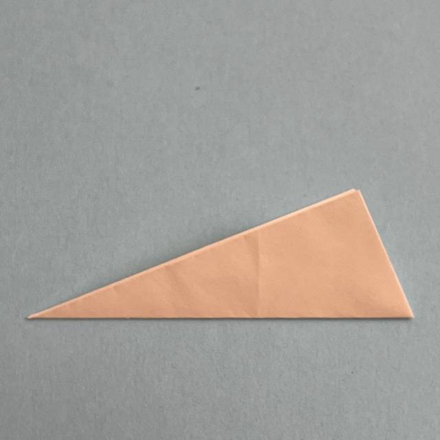 最初につけた折り線のところで、上に向かって折って折り線をつけます。