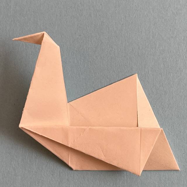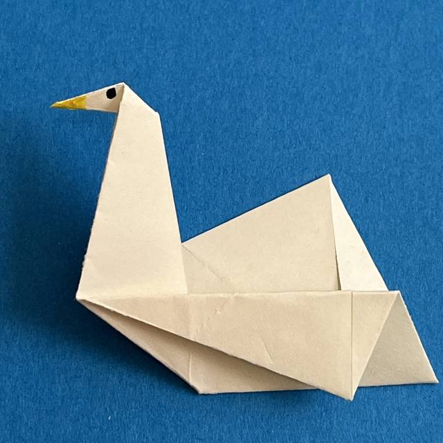 尖っている部分を中割りにして少し折ったら、白鳥の出来上がりです!