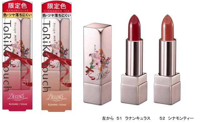今回の限定色は、人気フラワーショップ「DILIGENCE PARLOUR(ディリジェンスパーラー)」とのコラボ第3弾。華やかなブーケをイメージしたパッケージと、大人の唇を美しく彩る2色展開で、数量限定発売です。
