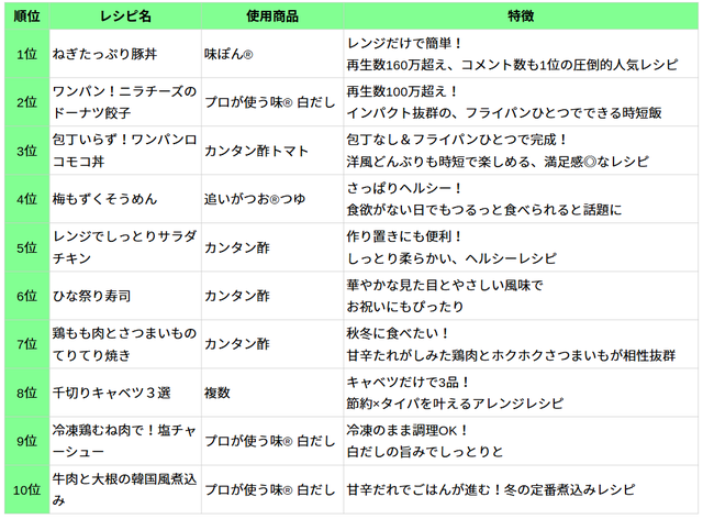 今回ご紹介する「人気レシピTOP10」は、忙しい毎日でも気軽に作れる、身近で親しみやすいレシピが揃っています。