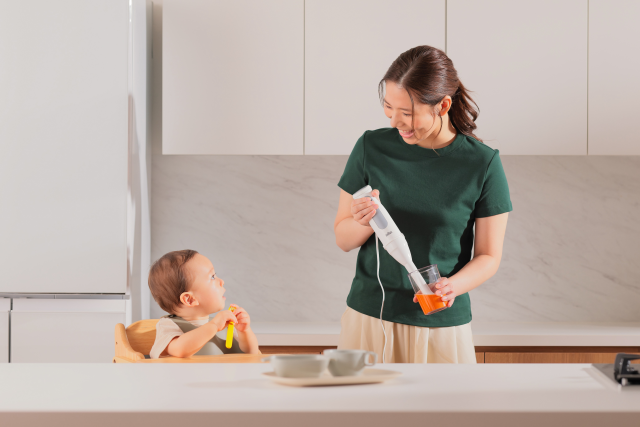 育児中のバタバタした毎日でも、調理中の“うっかり汚れ”を防げる安心の『スプラッシュコントロールテクノロジー』。ブラウン独自の設計で液体が飛び散るのを最小限に抑え、片付けの手間もぐっと軽減。赤ちゃんのそばでも気兼ねなく使える、思いやり設計です。