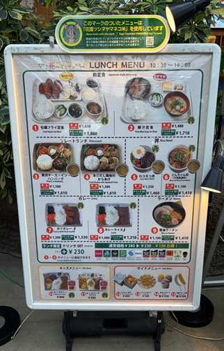 今回は13時前にお食事スペースへ行き、8席の確保が必要でしたがすぐに確保できました。お子様椅子も用意されています。メニューもキッズセットがあるので離乳食でないお子さんは家から準備する必要もありません。もちろん持ち込みも可能です。