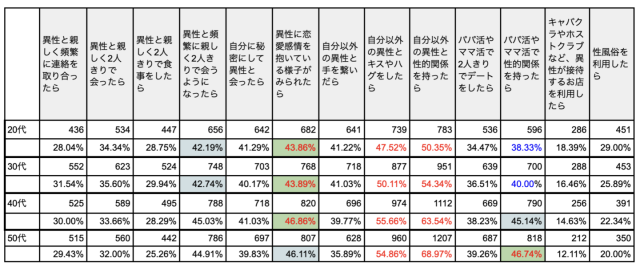 このような結果から、世代による浮気の定義の違いが見て取れます。