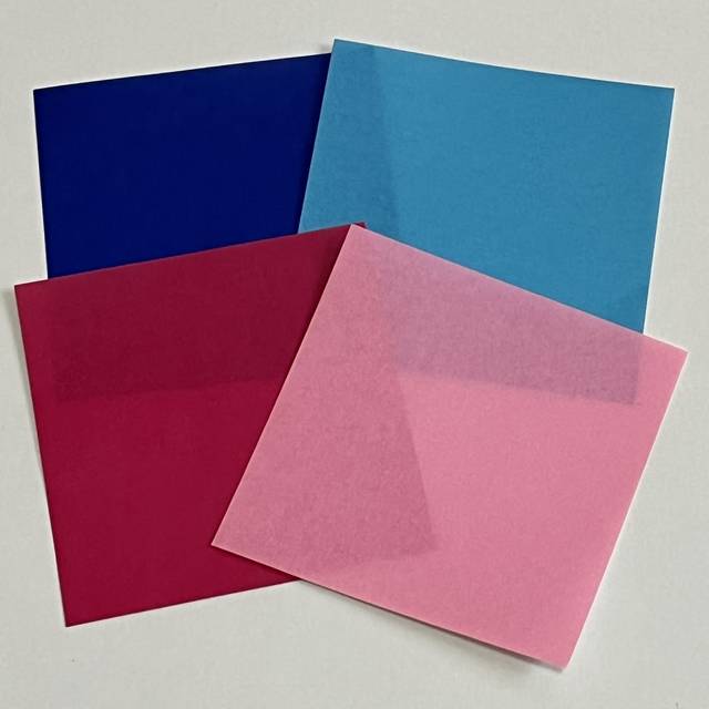 お雛様とお内裏様の着物の色の折り紙を2色ずつ用意します。