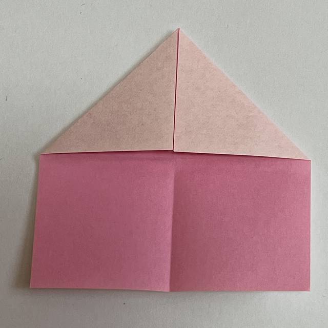 次はピンク色の折り紙を用意します。
