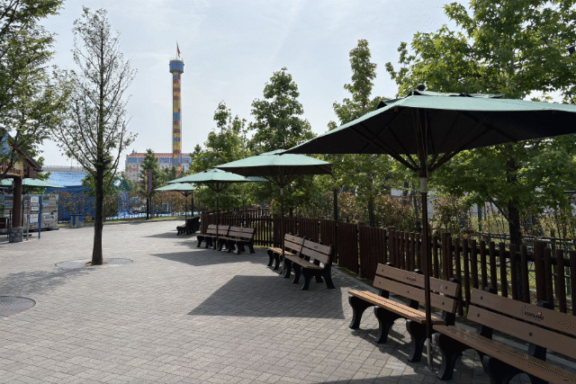 パラソル&屋根付きエリア:日差しを避けられる大型パラソルや、屋根のある「デュプロⓇ・バレー」など、休憩スポットも充実しています。