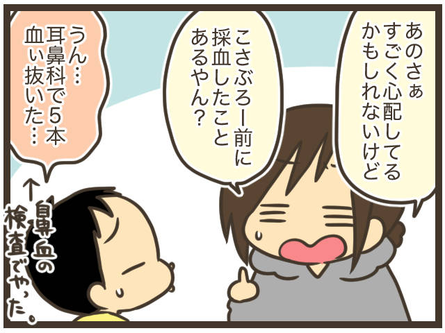 以前よく鼻血が出ていたこさぶろーは、耳鼻科で血液検査をしました。