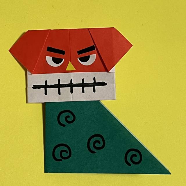 尖っている部分をお顔に差し込んで、のりでつけたら出来上がり!