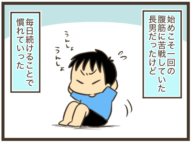 私がやる腹筋を見よう見まねでやってたのですが、彼は「一度決めたことはとりあえず継続してみる」ということが得意なタイプで、苦手でも本当に毎日やっていたんです。すごい。これがなかなかできないのに。