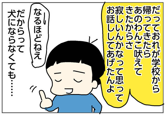 「いーくんとお話ししたかったんだね」とママが言っていた言葉を、いーくんはしっかり覚えていたのでしょう。いーくんなりに犬の言葉でお返事してあげようと思ったのかもしれませんね♡