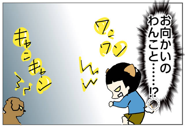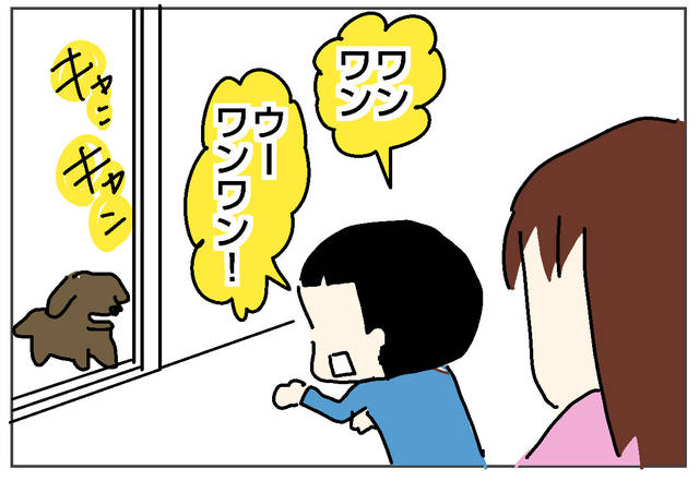 …とはいえ、近所のわんこと吠え合っている我が子を目にしたら、思わず「えええぇ~」となってしまうママの気持もわかります(笑)