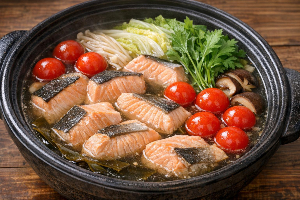 【定番】鮭とミニトマトのシンプル美容鍋