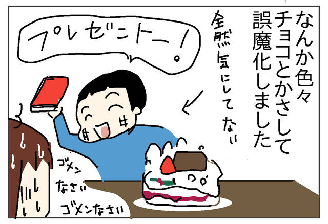崩れたケーキをなんとかごまかせて本当に良かったです!ママの愛とガッツの賜物ですね☆