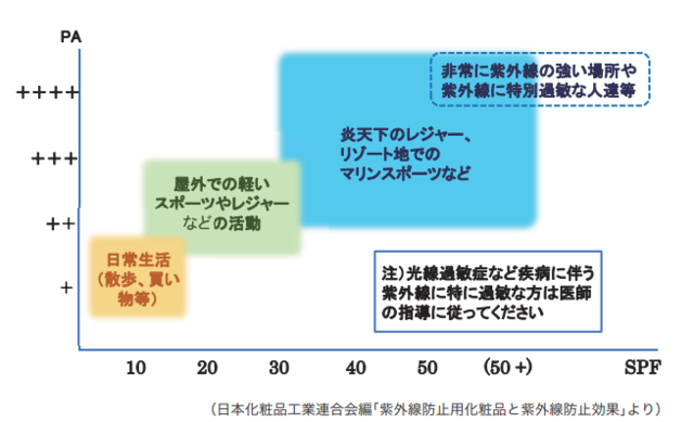数値が高い製品は落としにくく、皮膚への負担が増えて肌トラブルを招くことがあるため、屋外での長時間活動や短時間の外出など、その日の状況に応じて適切なものを選びましょう。