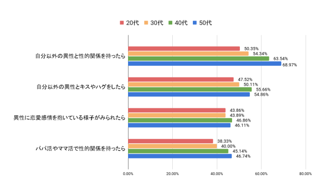 このような結果から、世代による浮気の定義の違いが見て取れます。