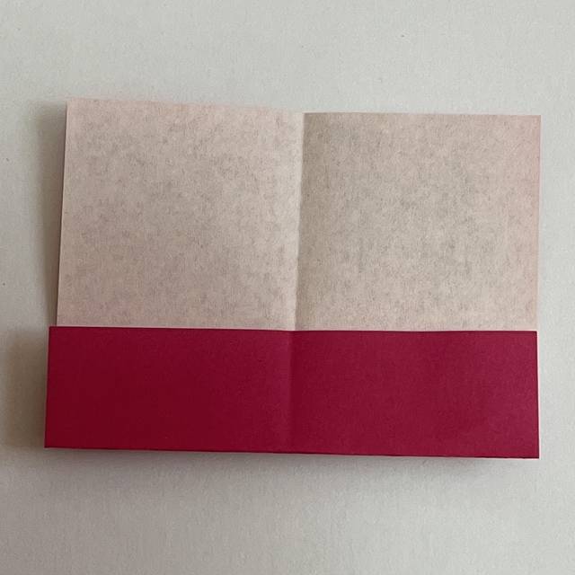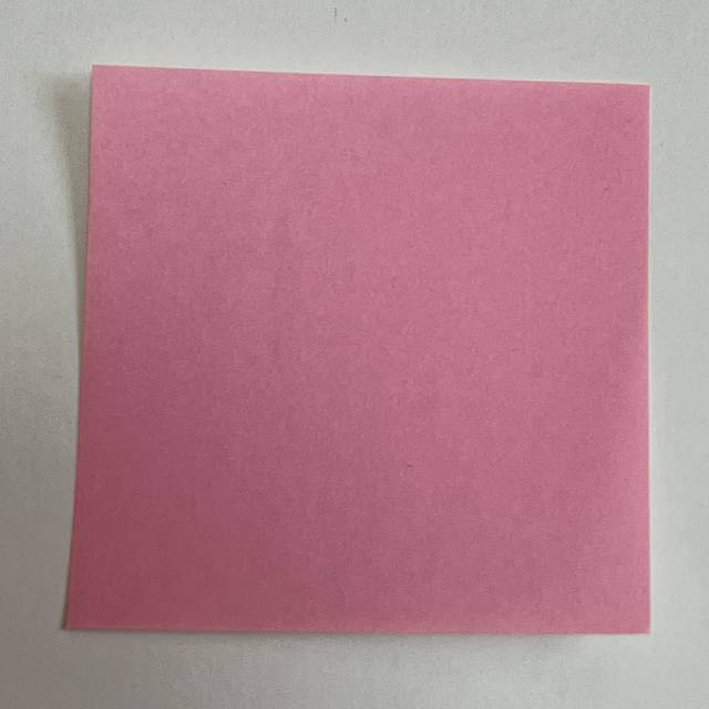 次はピンク色の折り紙を用意します。