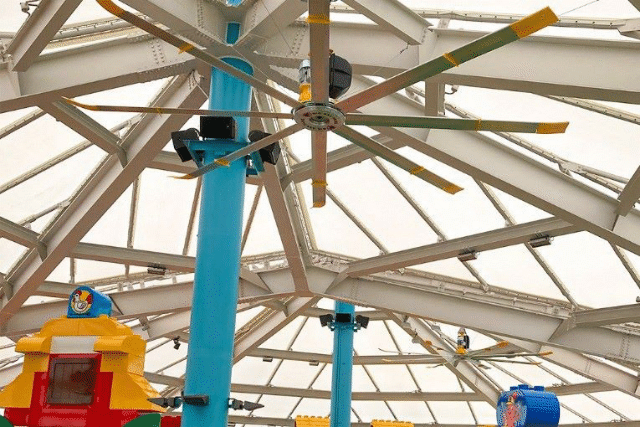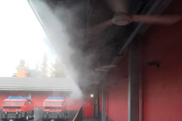 巨大ファン&ミストの設置:直径約5mの巨大ファンや、涼しいミストがパーク内各所に。