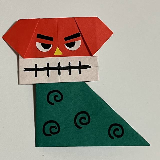 尖っている部分をお顔に差し込んで、のりでつけたら出来上がり!