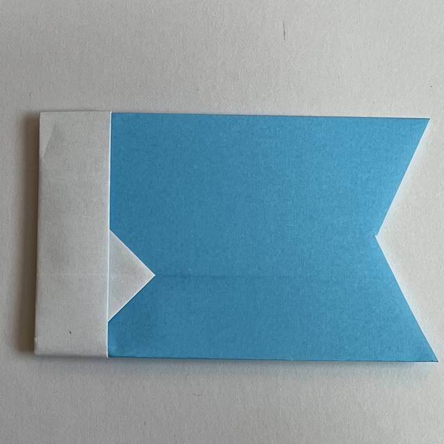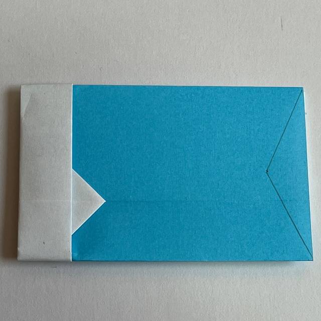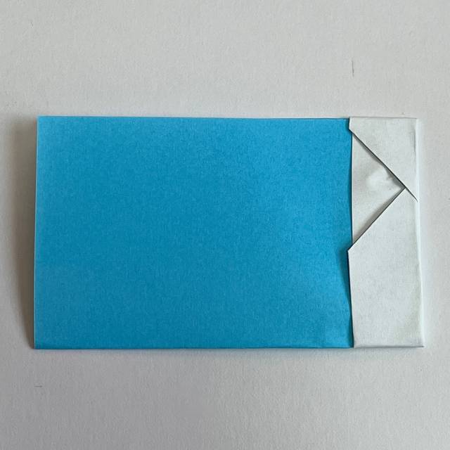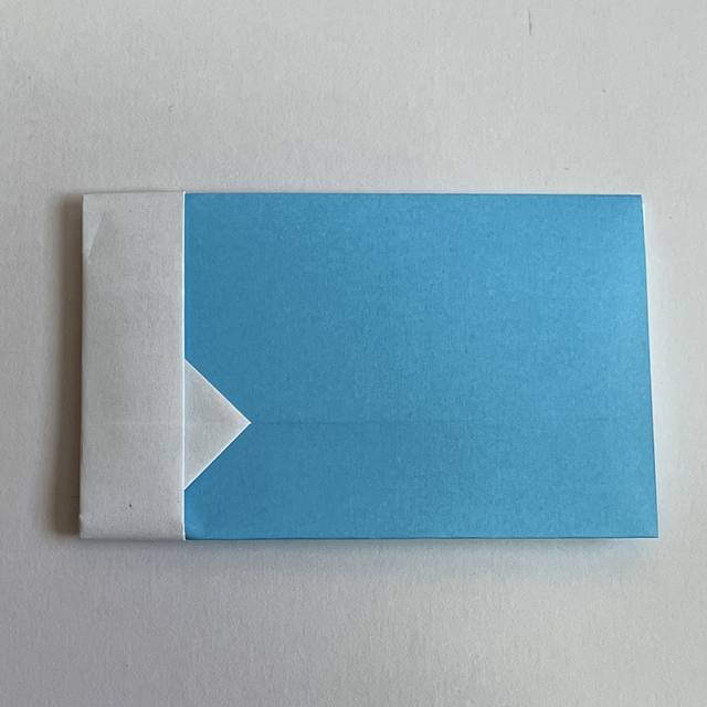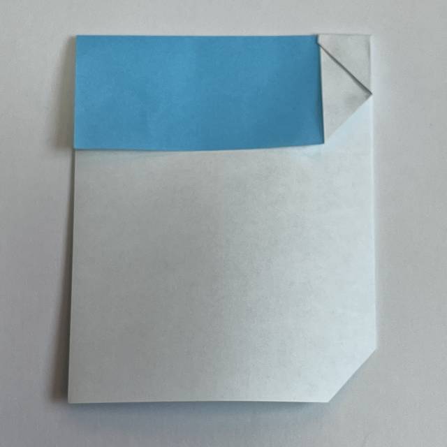 一番上のところまで下から折り、白い部分を角の三角のところに差し込みます。